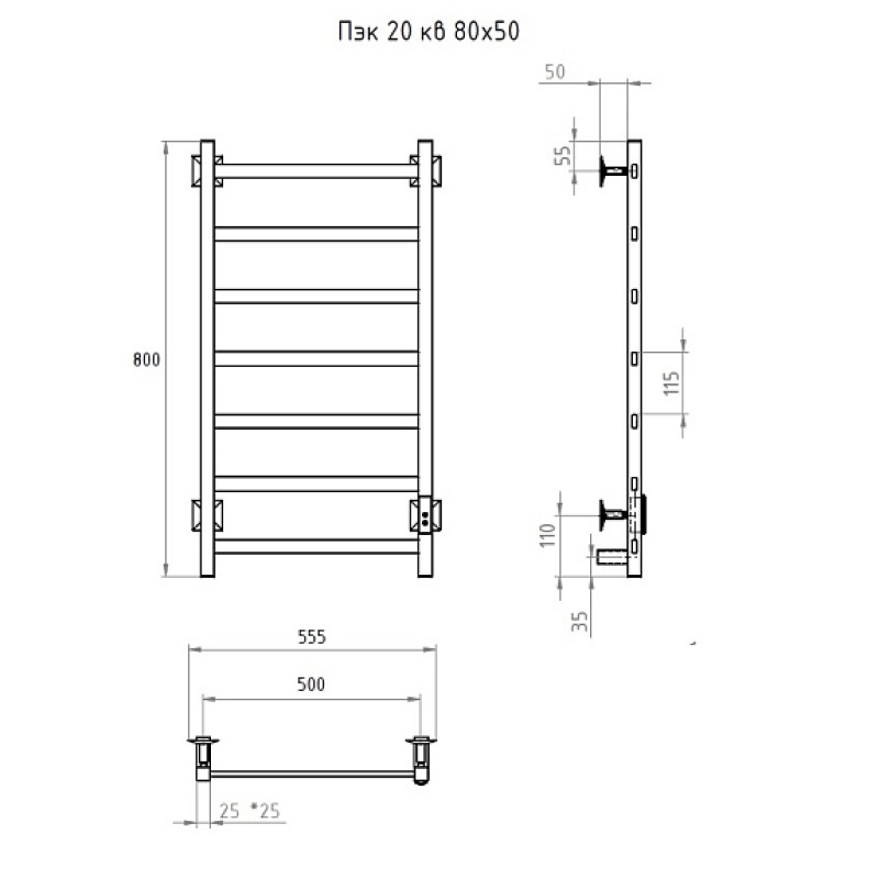 Закажите товар "Полотенцесушитель электрический (лесенка) Тругор Пэк сп 20 кв 80х50 см, графит"
