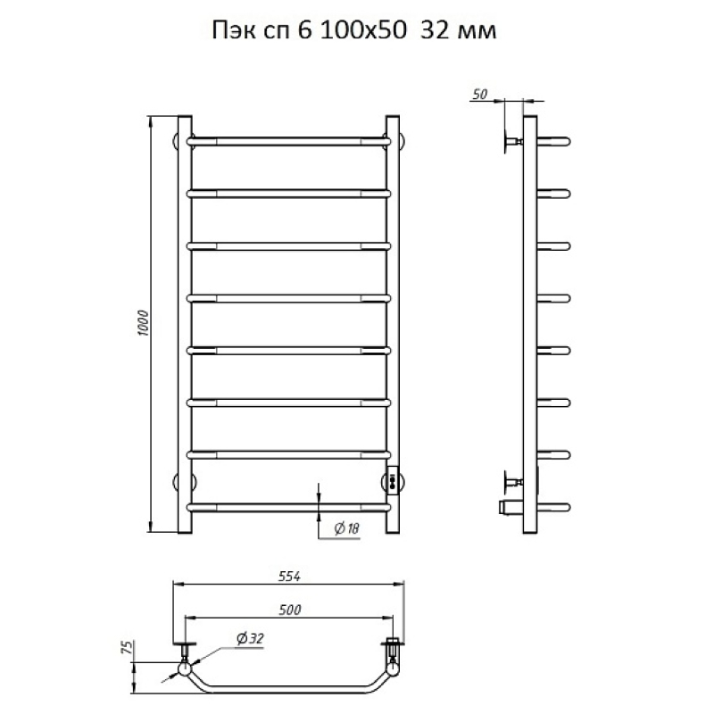Полотенцесушитель Пэк сп 6 100х50 32 мм. Коллекция: ПЭК сп 6. Тип: электрический. Форма: лесенка. Мощность (Вт): не более 100Вт. Количество перекладин: 8. Материал: нержавеющая сталь AISI 201. Подключение: скрытое электрическое соединение/электропровод с вилкой.