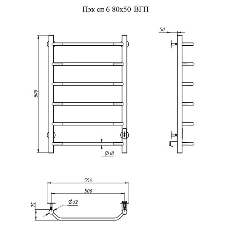Закажите товар "Полотенцесушитель электрический (лесенка) Тругор Пэк сп 6 80х50 см, графит"