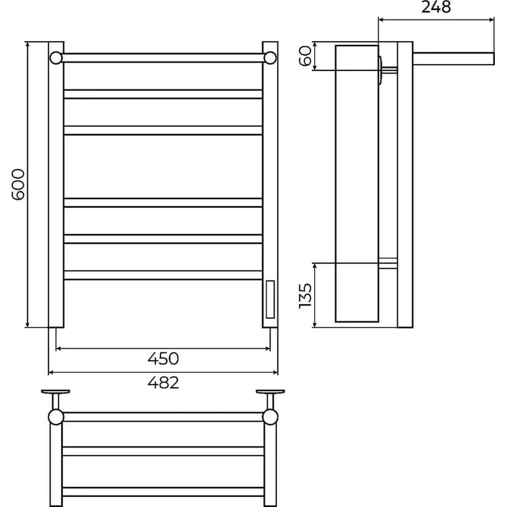 Закажите товар "Полотенцесушитель электрический с полкой Terminus Аврора П6 45х60 КС 905, черный матовый"