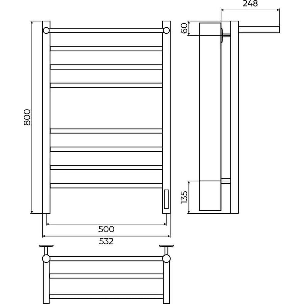 Закажите товар "Полотенцесушитель электрический с полкой Terminus Аврора П8 50х80 КС 905, черный матовый"