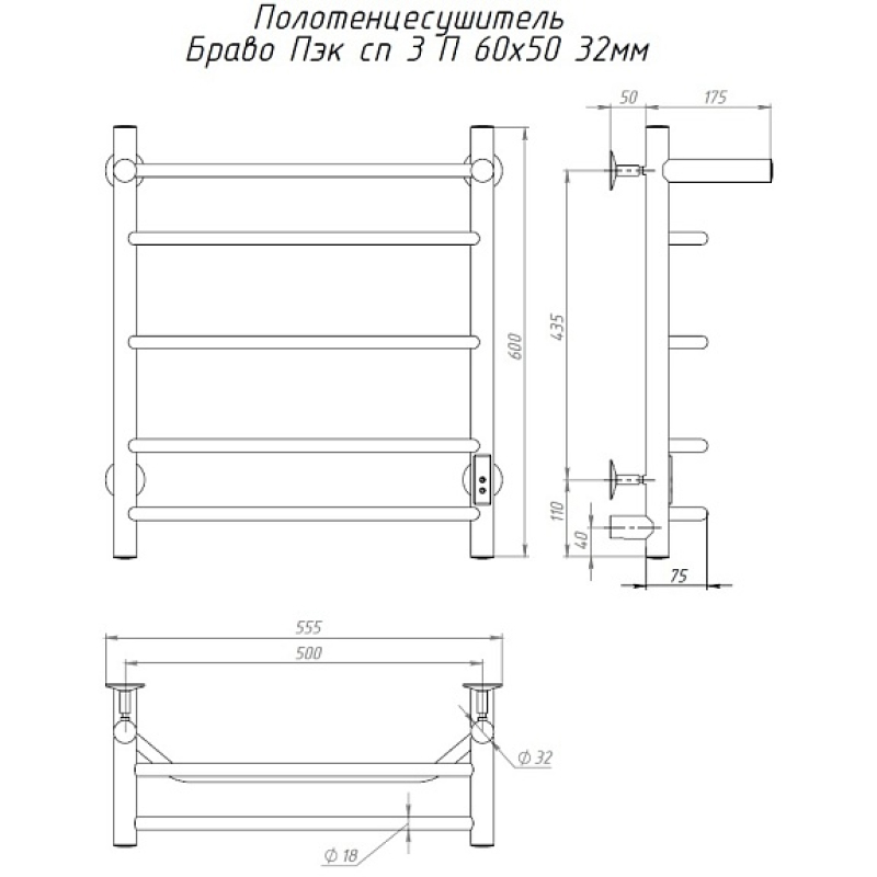 Закажите товар "Полотенцесушитель электрический с полочкой (лесенка) Тругор Браво Пэк сп 3 П 60х50 см"