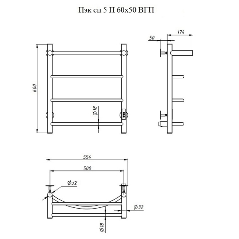 Полотенцесушитель Пэк сп 5 П 60х50 черный ВГП. Коллекция: ПЭК сп 5. Тип: электрический. Форма: лесенка. Мощность (Вт): не более 100Вт. Количество перекладин: 4. Материал:  сталь. Подключение: скрытое электрическое соединение/электропровод с вилкой. Дополнительная информация: выключатель с таймером на 2, 4 и 6 часов работы и терморегулятором встроен в коллектор полотенцесушителя.