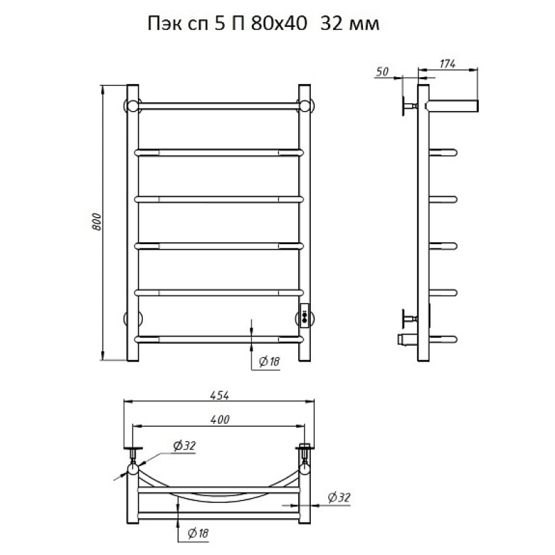Закажите товар "Полотенцесушитель электрический с полочкой (лесенка) Тругор Пэк сп 5 П 80х40 см"