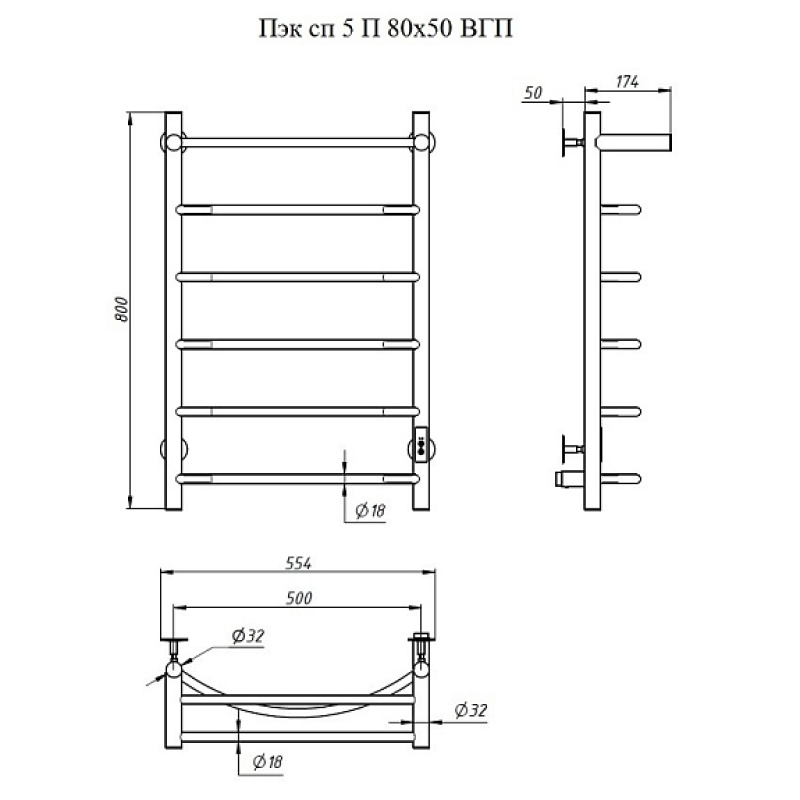 Закажите товар "Полотенцесушитель электрический с полочкой (лесенка) Тругор Пэк сп 5 П 80х50 см, белый"