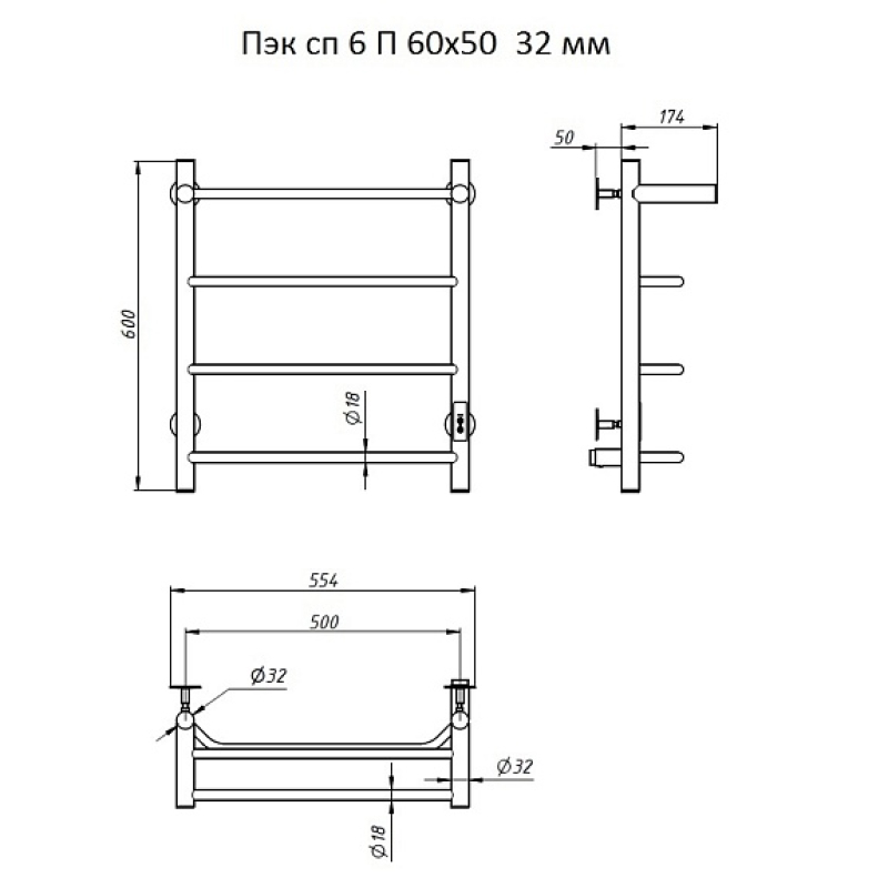 Закажите товар "Полотенцесушитель электрический с полочкой (лесенка) Тругор Пэк сп 6 П 60х50 см"