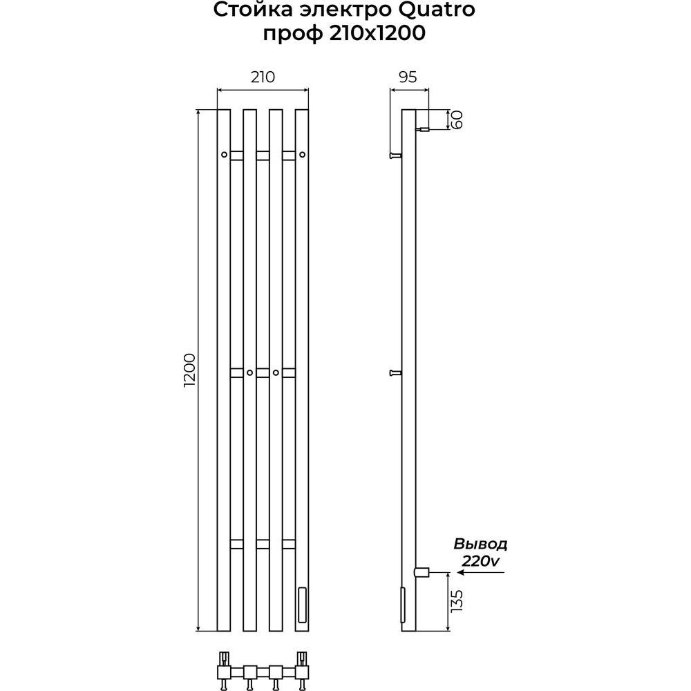 Полотенцесушитель электрический Terminus Стойка QUATRO проф 120, черный