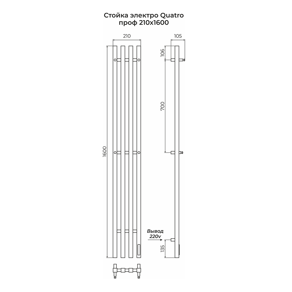 Закажите товар "Полотенцесушитель электрический Terminus Стойка QUATRO проф 160"