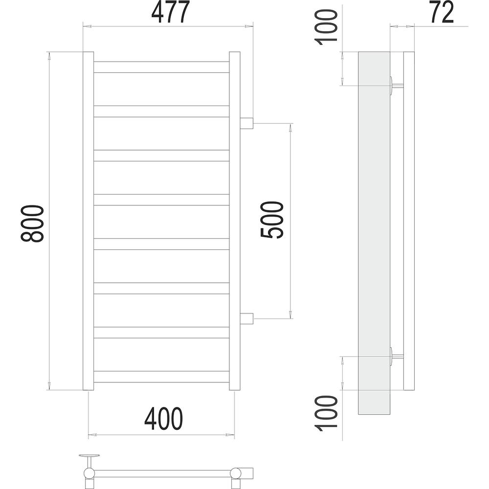 | Комплектация | Полотенцесушитель, кран Маевского, заглушки, крепления. |