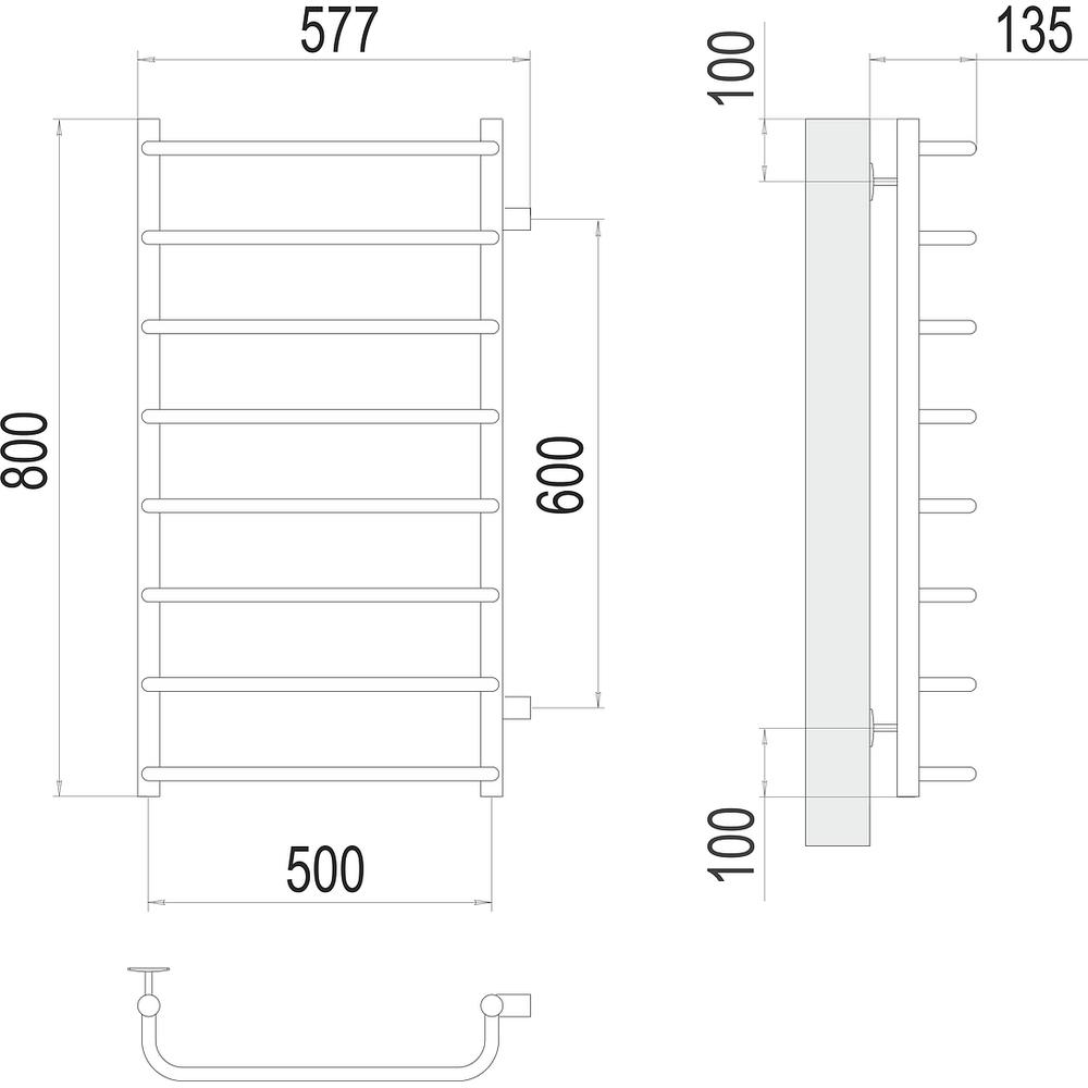 | Комплектация | Полотенцесушитель, кран Маевского, заглушки, крепления. |