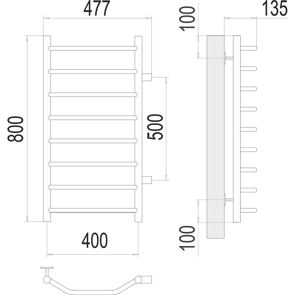 | Комплектация | Полотенцесушитель, кран Маевского, заглушки, крепления. |
