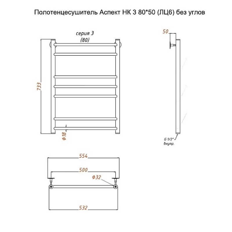 Полотенцесушитель водяной (лесенка) Тругор Аспект НК 3 80х50 см (без углов)