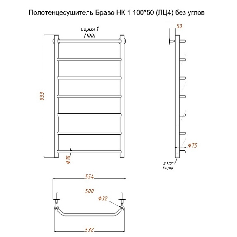 Закажите товар "Полотенцесушитель водяной (лесенка) Тругор Браво НК 1 100х50 см (без углов)"