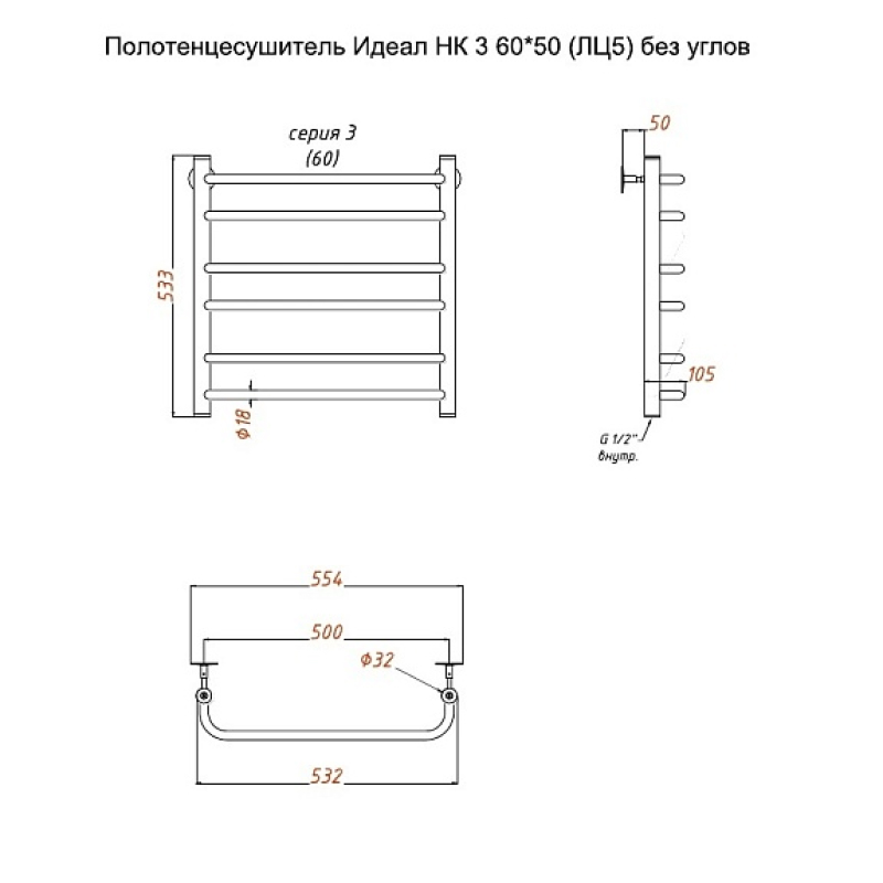 Закажите товар "Полотенцесушитель водяной (лесенка) Тругор Идеал НК 3 60х50 см (без углов)"