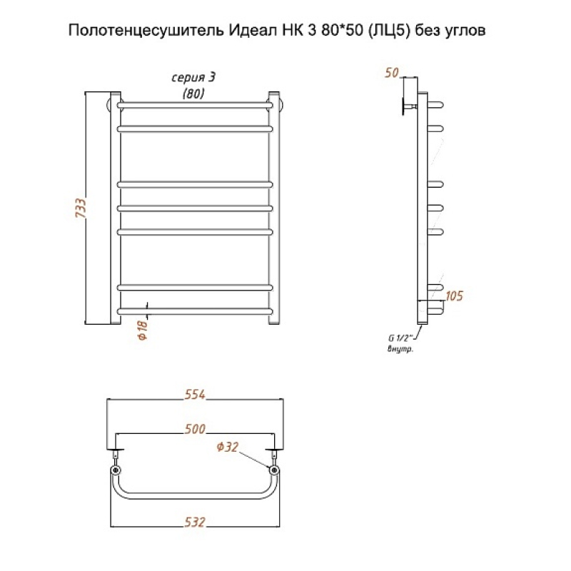 Закажите товар "Полотенцесушитель водяной (лесенка) Тругор Идеал НК 3 80х50 см (без углов)"