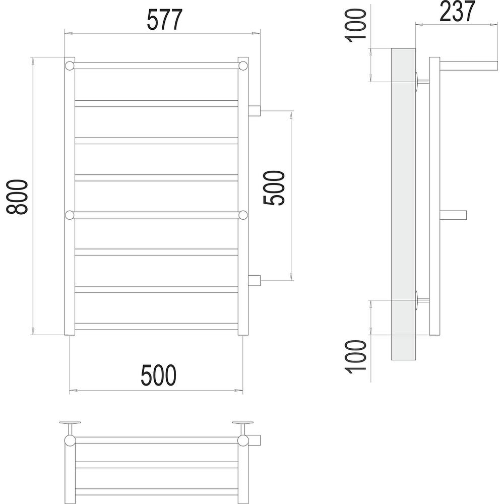 Закажите товар "Полотенцесушитель водяной с полкой (боковое подключение) Terminus Анкона П8 50х80"