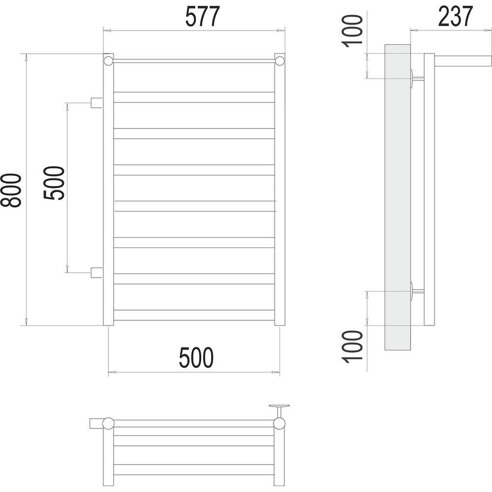 Полотенцесушитель водяной с полкой (боковое подключение) Terminus Хендрикс П8 50х80