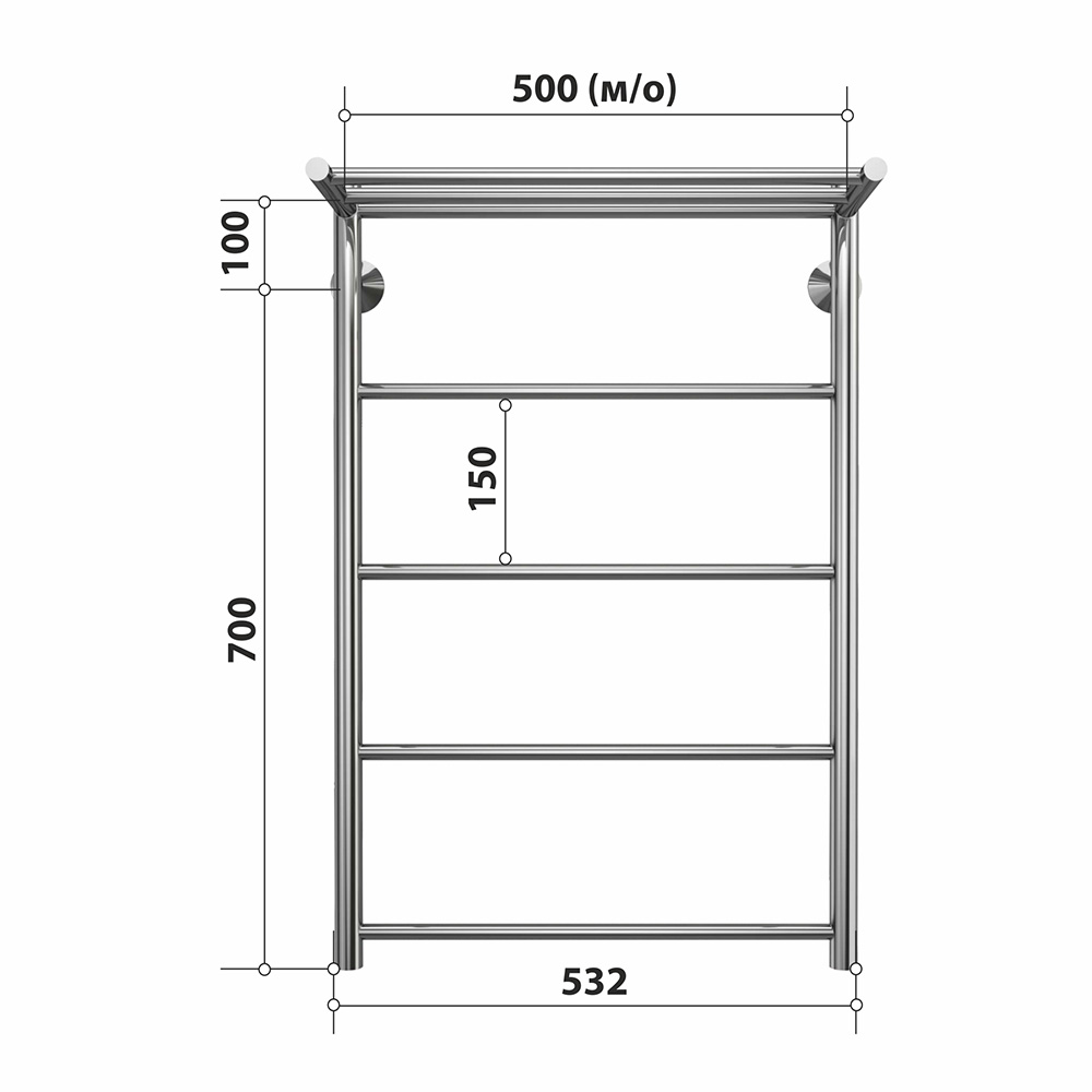 Закажите товар "Полотенцесушитель водяной с полкой Stelmix 80×50 см, прямой с полкой"