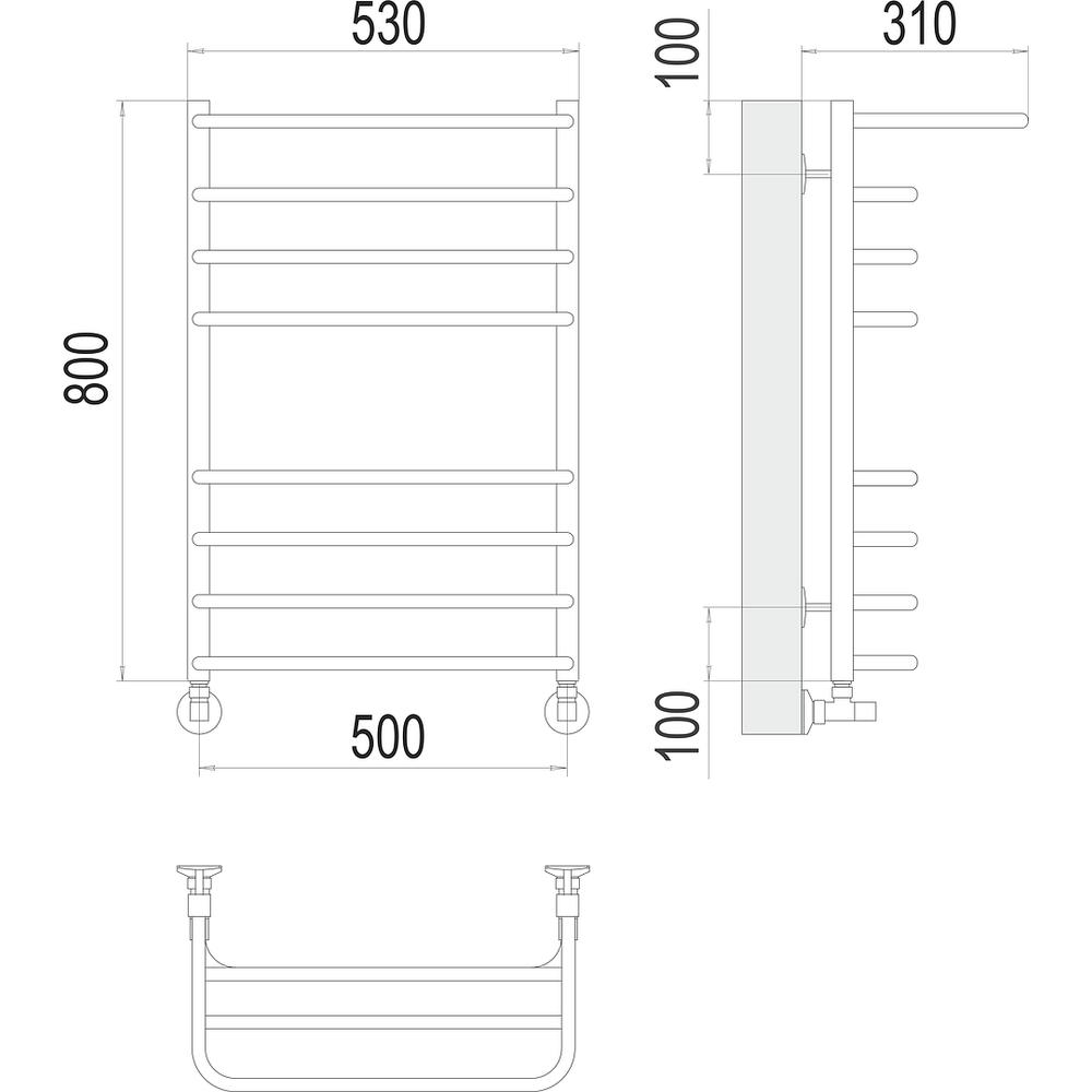 Закажите товар "Полотенцесушитель водяной с полкой Terminus Арктур П8 50х80"