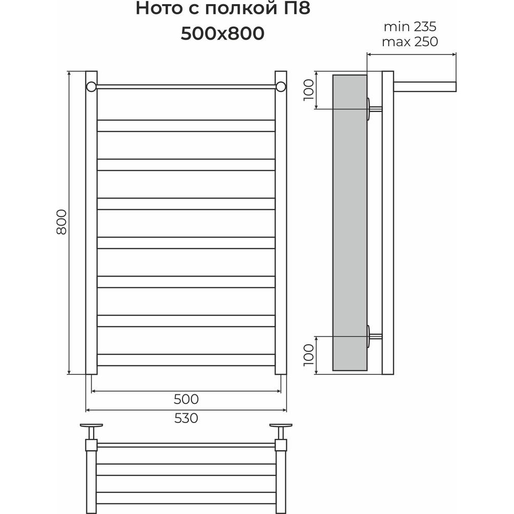Закажите товар "Полотенцесушитель водяной с полкой Terminus Ното П8 50х80, хром"