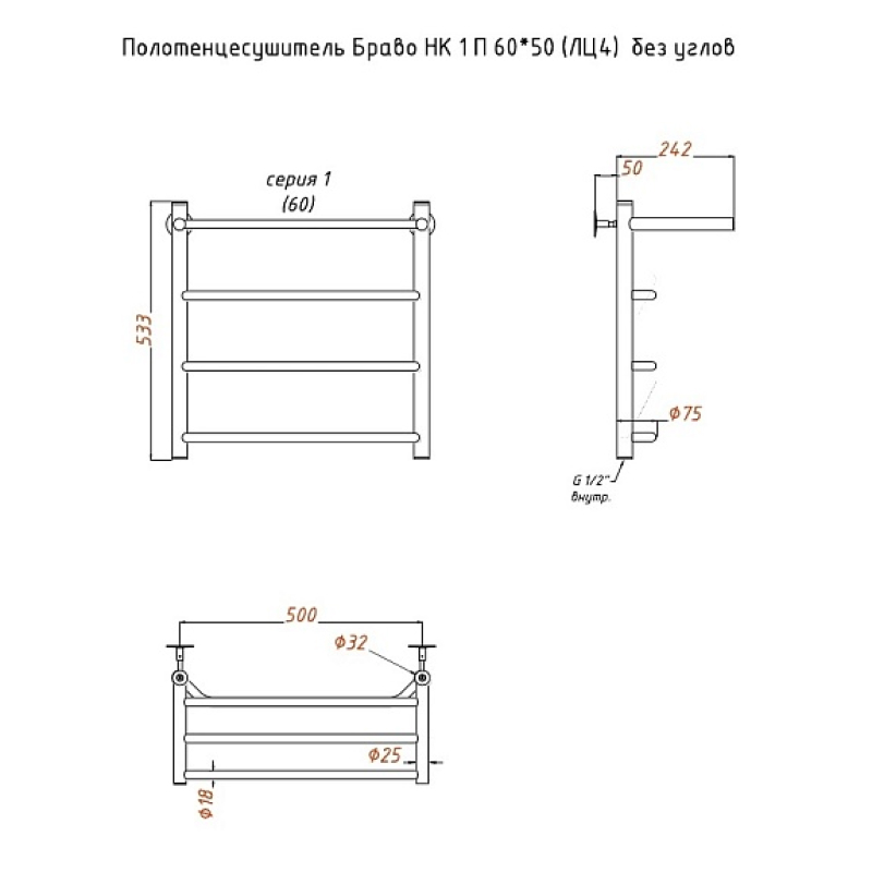 Закажите товар "Полотенцесушитель водяной с полочкой (лесенка) Тругор Браво НК 1 П 60х50 см (без углов)"