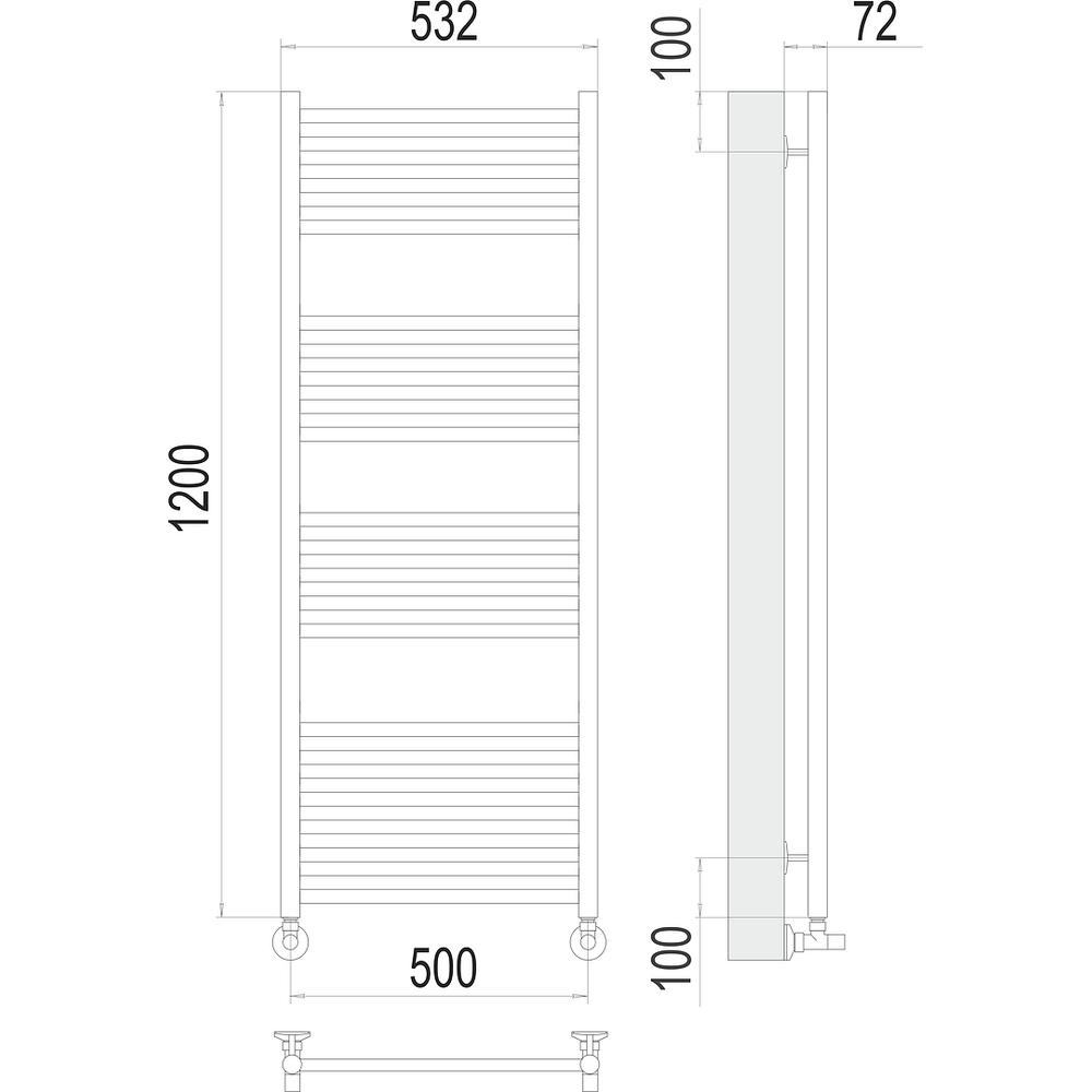 | Комплектация | Полотенцесушитель, заглушки, кран Маевского, крепления, эксцентрики, отражатели, угловое соединение (ГШС 3/4 на 1/2). |