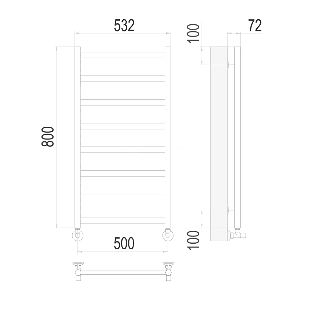 | Комплектация | Полотенцесушитель, кран Маевского, заглушки, крепления. |