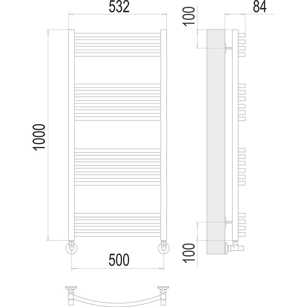 | Комплектация | Полотенцесушитель, заглушки, кран Маевского, крепления, эксцентрики, отражатели, угловое соединение (ГШС 3/4 на 1/2). |