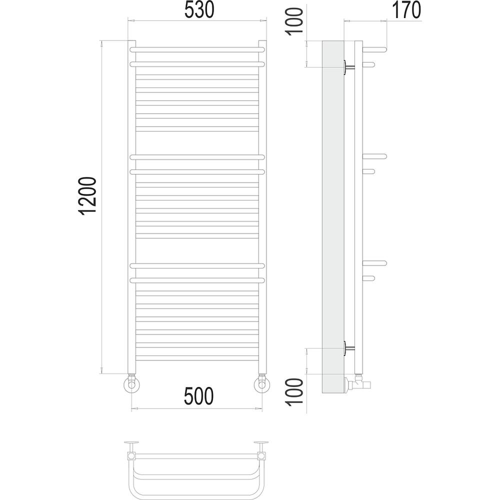 | Комплектация | Полотенцесушитель, заглушки, кран Маевского, крепления, эксцентрики, отражатели, угловое соединение (ГШС 3/4 на 1/2). |