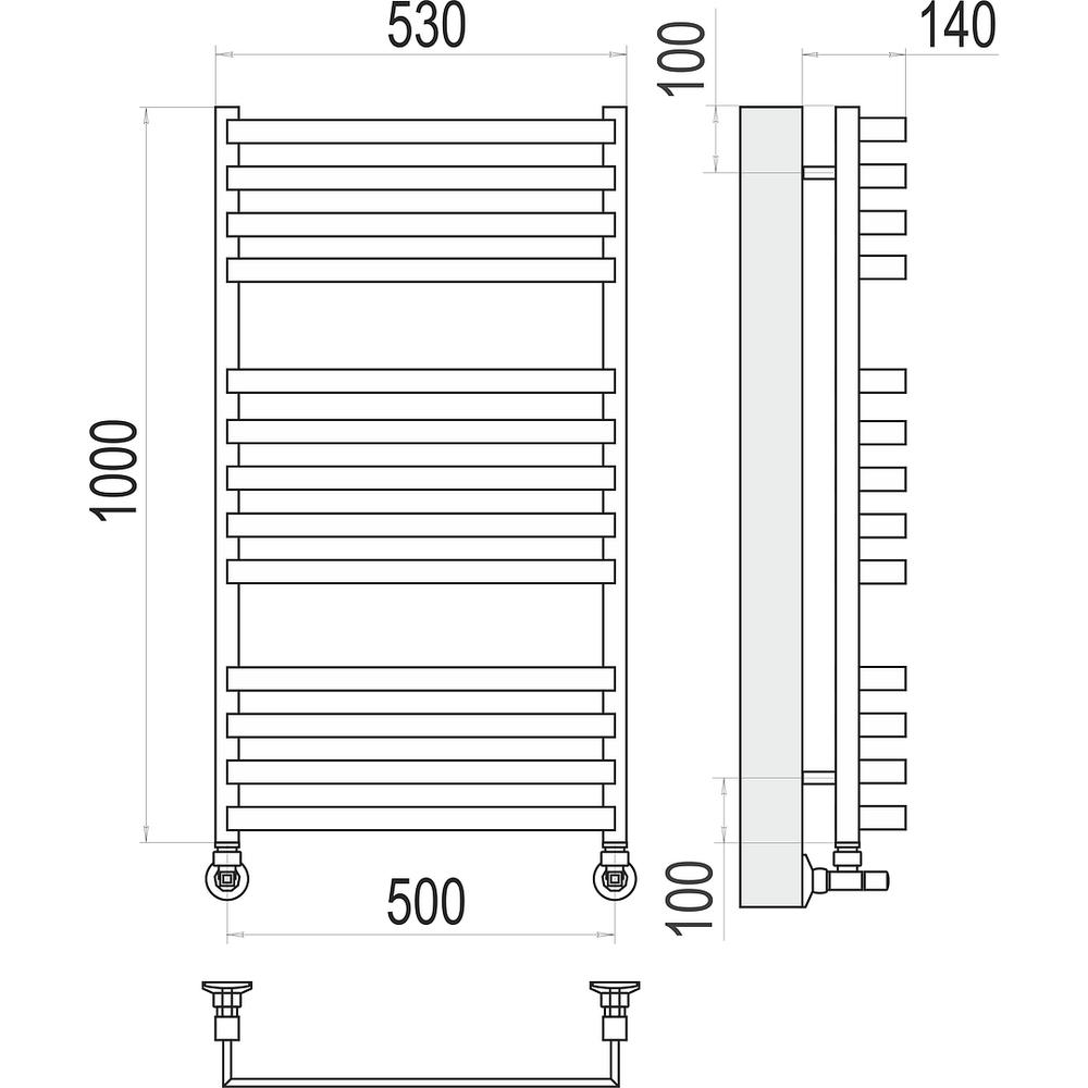 | Комплектация | Полотенцесушитель, кран Маевского, заглушка, крепление, эксцентрики, отражатели, комплект вентилей. |