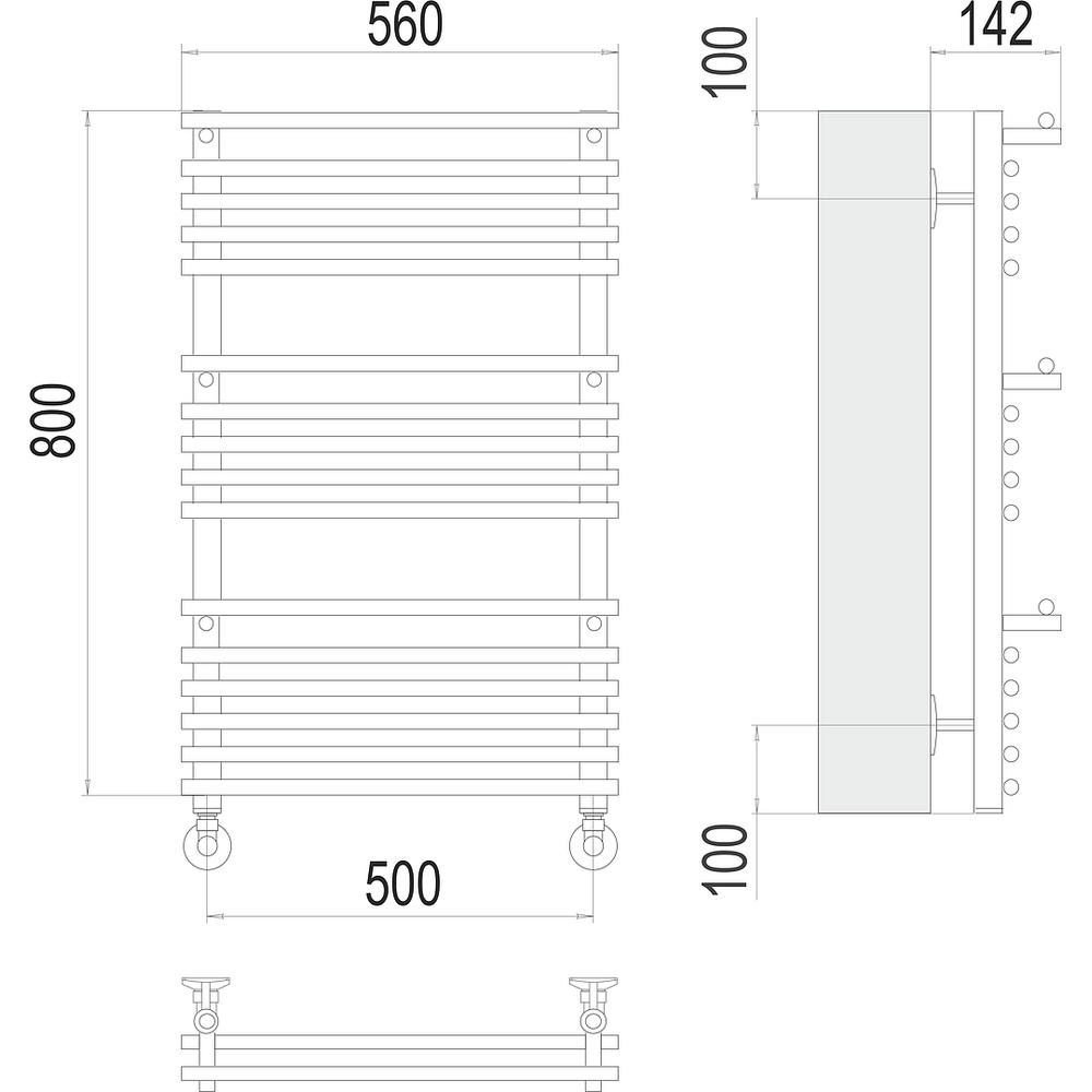 | Комплектация | Полотенцесушитель, заглушки, кран Маевского, крепления, эксцентрики, отражатели, угловое соединение (ГШС 3/4 на 1/2). |