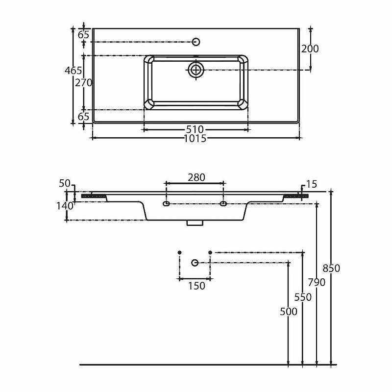 | Без отверстий под смеситель | |