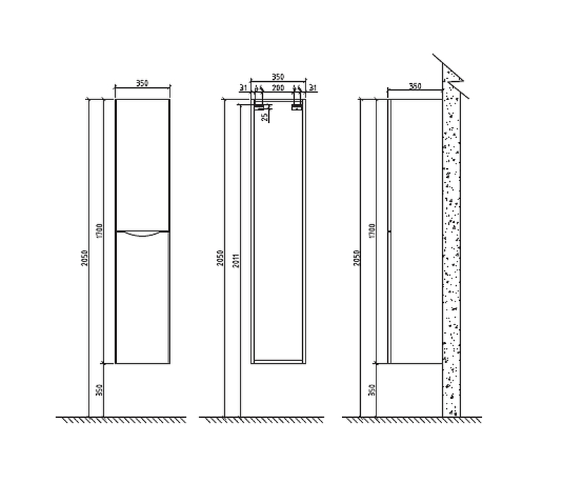 Шкаф-пенал BelBagno Ancona-N 35 ANCONA-N-1700-2A-SC-RW-R подвесной, с двумя распашными дверцами (петли справа).