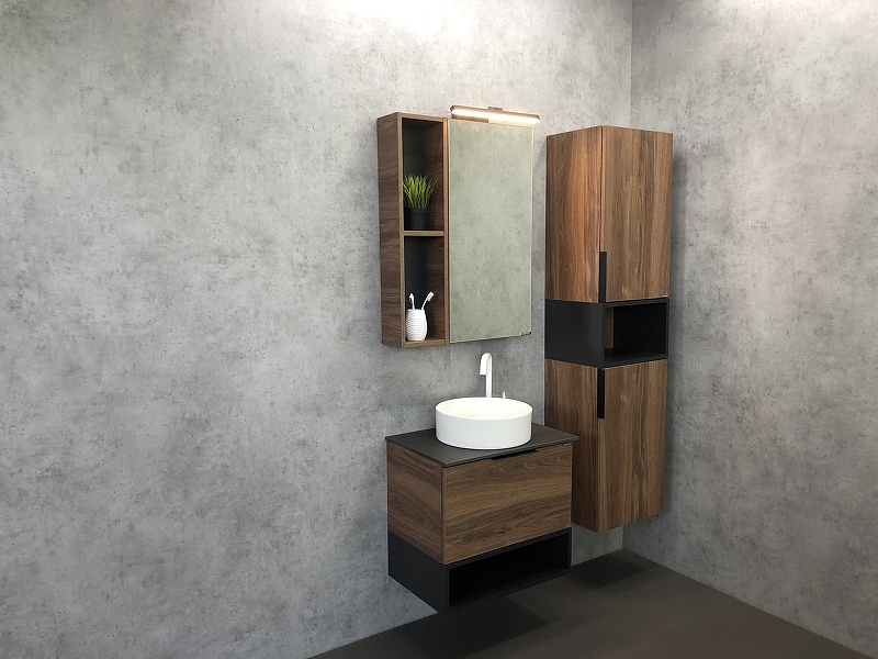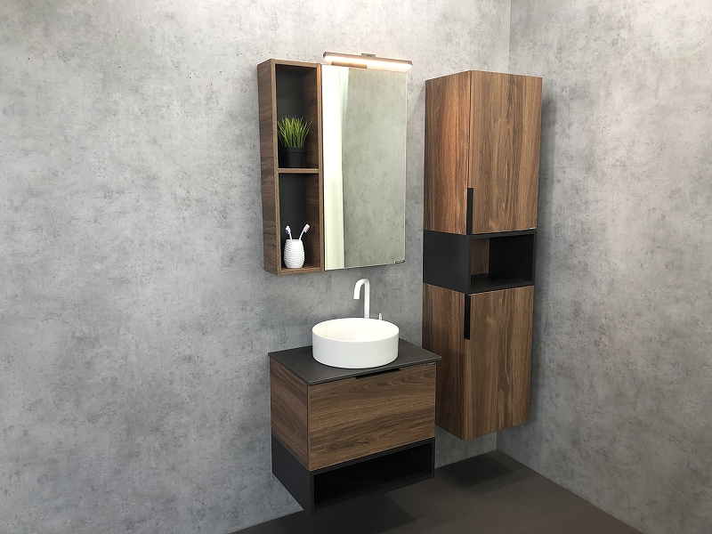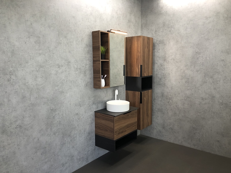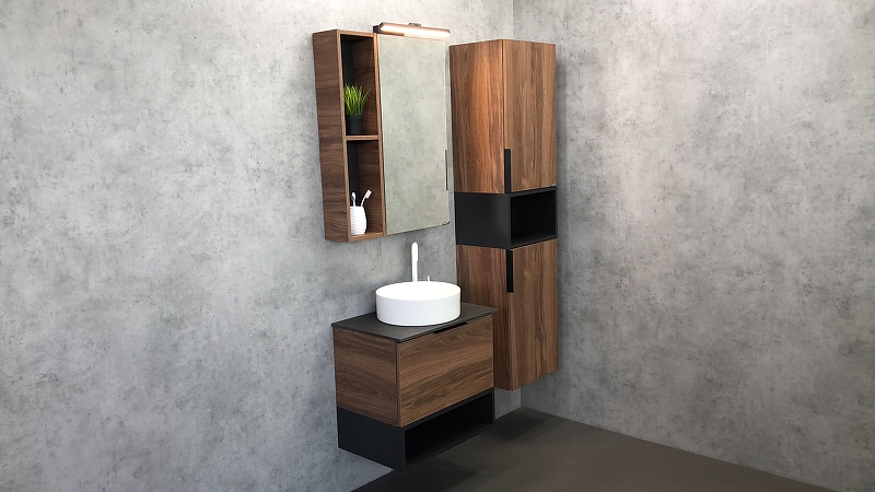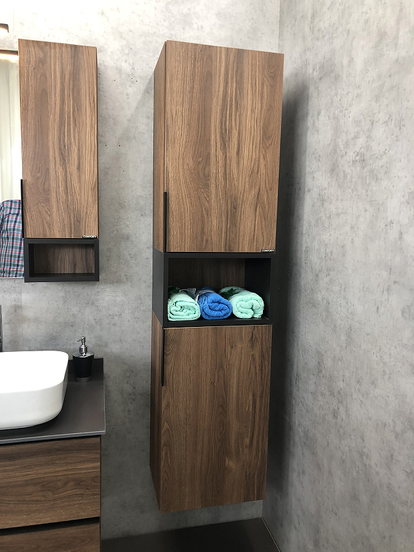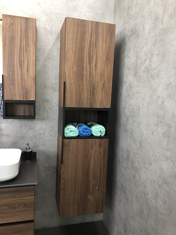 Закажите товар "Шкаф пенал Comforty Штутгарт 40 00004151544 подвесной Дуб темно-коричневый Черный матовый"