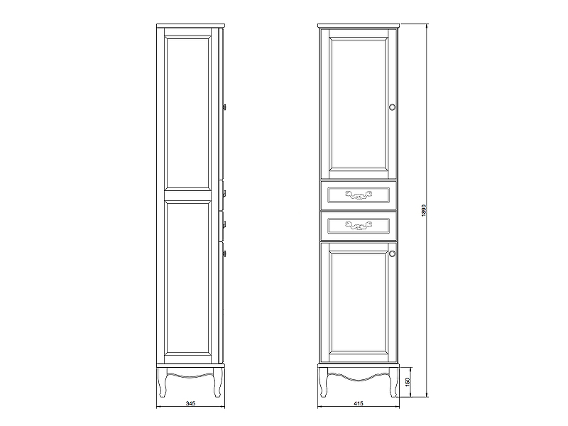 Закажите товар "Шкаф пенал ValenHouse Эллина 40 E40_КБLБ L Белый ручки Бронза"