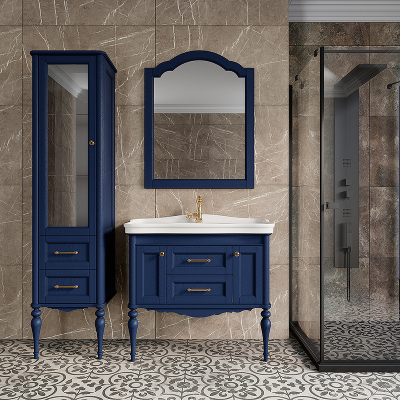 Закажите товар "Шкаф пенал ValenHouse Эстетика 50 L ES50_КСLЗ Синий ручки Золото"