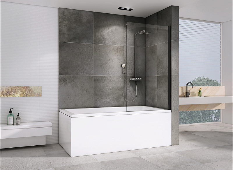 Закажите товар "Шторка на ванну Abber Immer Offen 80×140 AG71080B профиль Черный стекло прозрачное"