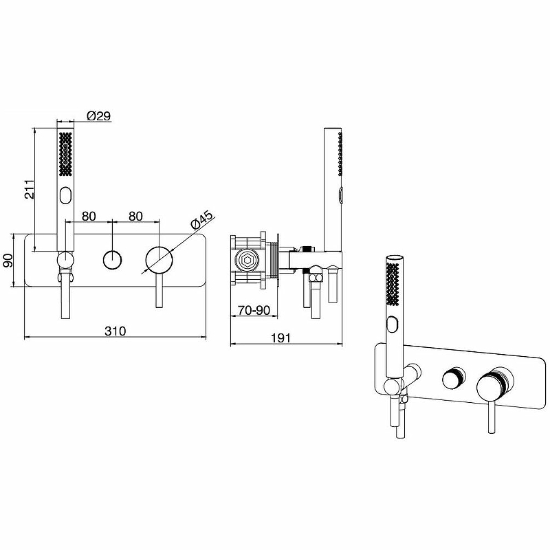 | Оснащение | С внутренней частью, с душевым гарнитуром, с держателем для душа |