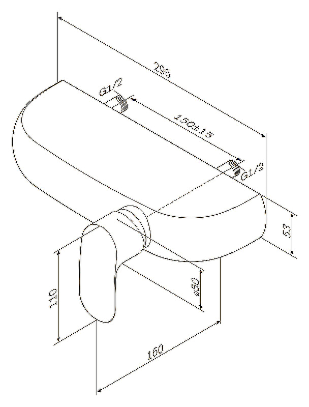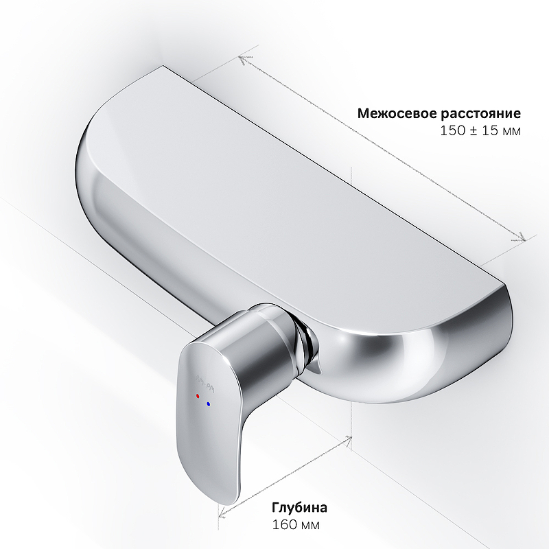 Настенный смеситель для душа AM.PM Sensation F3020000 однорычажный, монтируемый на два отверстия.