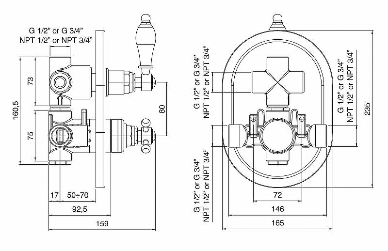 Закажите товар "Смеситель для душа Cezares Margot MARGOT-VDIM2-T-03/24-Bi с термостатом Золото 24 карат"