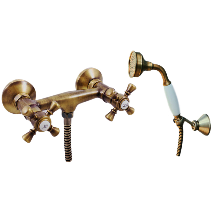 Смеситель для душа Rav Slezak Morava retro MK780.5/2 монолитный, с душевым гарнитуром. Латунные рукоятки. Качественные керамические кран буксы, гарантируют долговечность и мягкий поток воды, производство Германия. Металлический шланг с двойной оплеткой, длиной 1500 мм. Латунная душевая лейка с керамической ручкой. Настенный держатель для лейки с возможностью менять угол наклона. В комплекте смеситель, шланг, душевая лейка, держатель для лейки и комплект крепления.