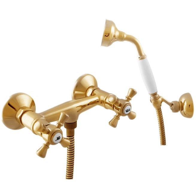 Смеситель для душа Rav Slezak Morava retro MK780.5/2 монолитный, с душевым гарнитуром. Латунные рукоятки. Качественные керамические кран буксы, гарантируют долговечность и мягкий поток воды, производство Германия. Металлический шланг с двойной оплеткой, длиной 1500 мм. Латунная душевая лейка с керамической ручкой. Настенный держатель для лейки с возможностью менять угол наклона. В комплекте смеситель, шланг, душевая лейка, держатель для лейки и комплект крепления.