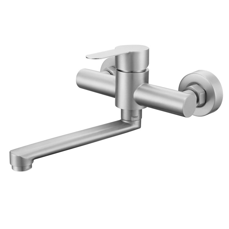 Смеситель для кухни настенный Fmark FS8207L, сатин. Гарантийный срок: 5 лет. Поверхность: матовая. Материал: нержавеющая сталь. Монтаж:на стену.