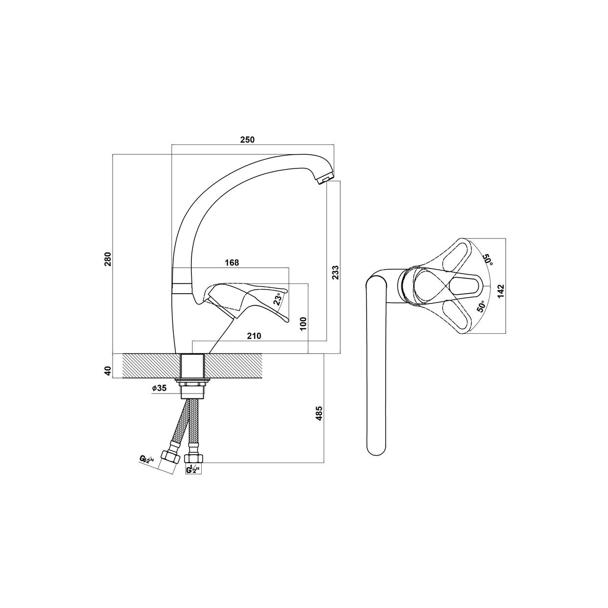 | Высота излива, см | 23-3 |
