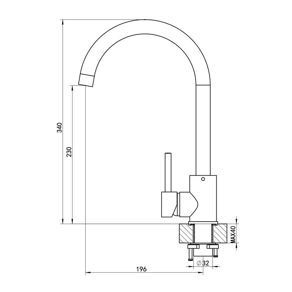 Смеситель однорычажный с высоким изливом. Материал - Нержавеющая сталь. Поворотный излив. Керамический картридж 35мм. Гибкая подводка.