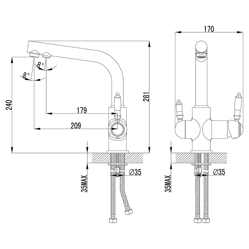 Однорычажный смеситель для кухни Lemark Villa LM4861B с поворотным изливом, с подключением к фильтру с питьевой водой. Благородное обаяние вечных ценностей.