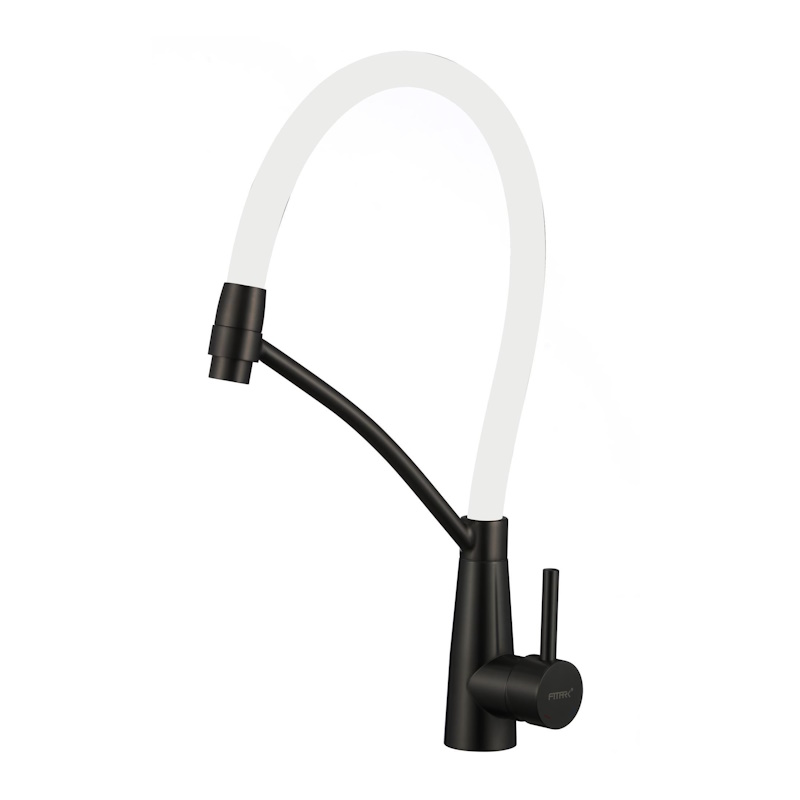 Закажите товар "Смеситель для кухни с гибким изливом Fmark FS8255H-02, черный/белый"