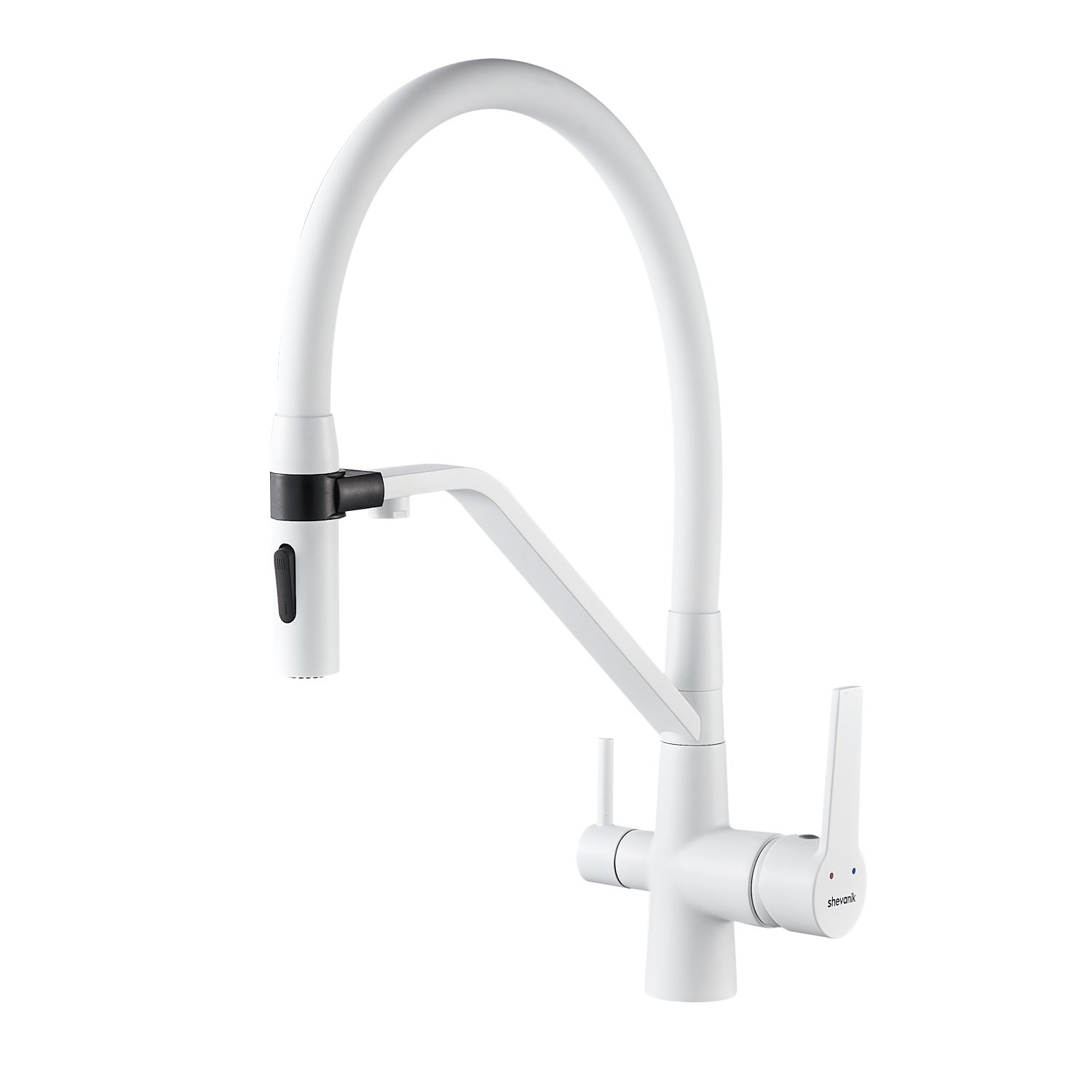 Закажите товар "Смеситель для кухни с гибким изливом и подключением фильтра Shevanik S278C, белый"