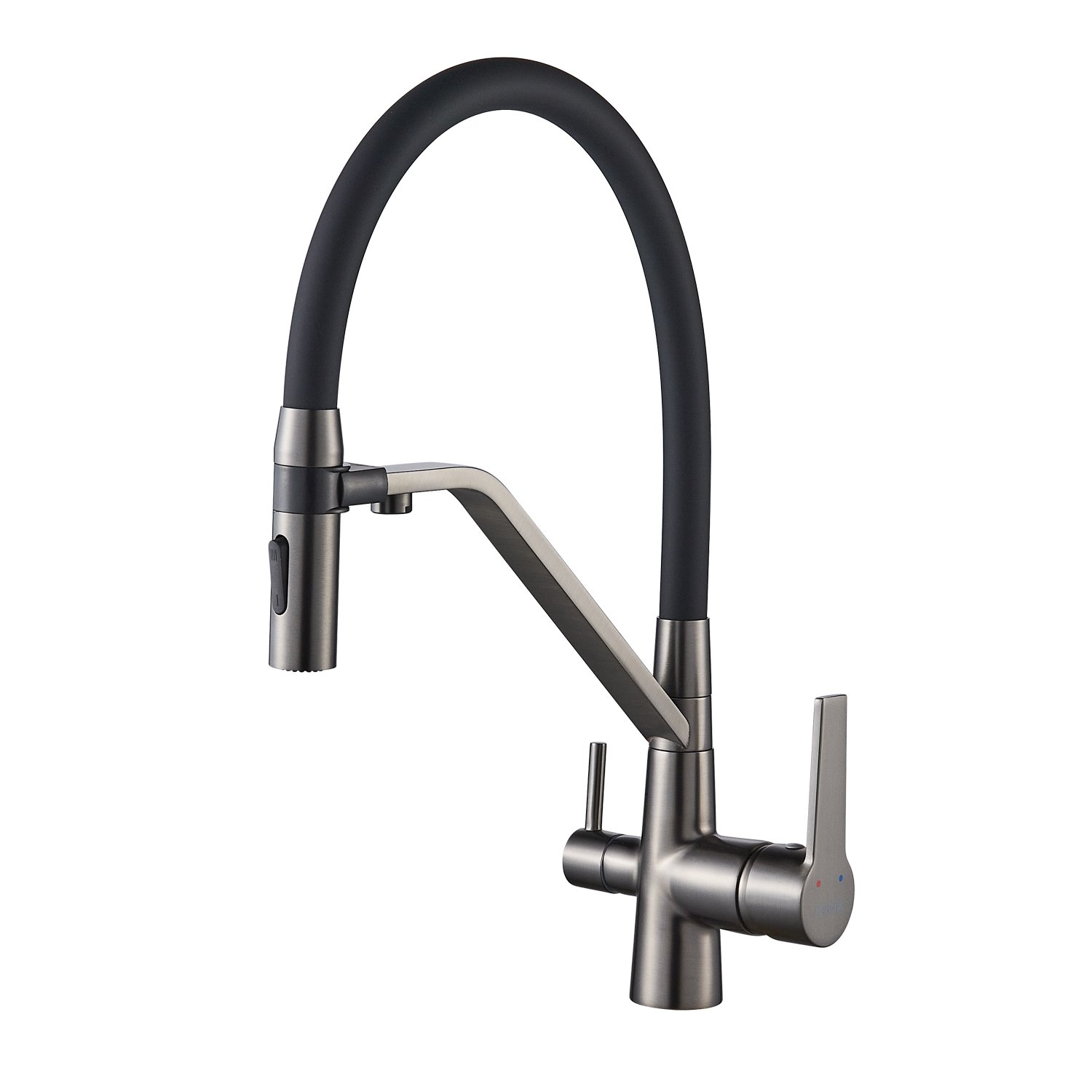 Закажите товар "Смеситель для кухни с гибким изливом и подключением фильтра Shevanik S278T, оружейная сталь"