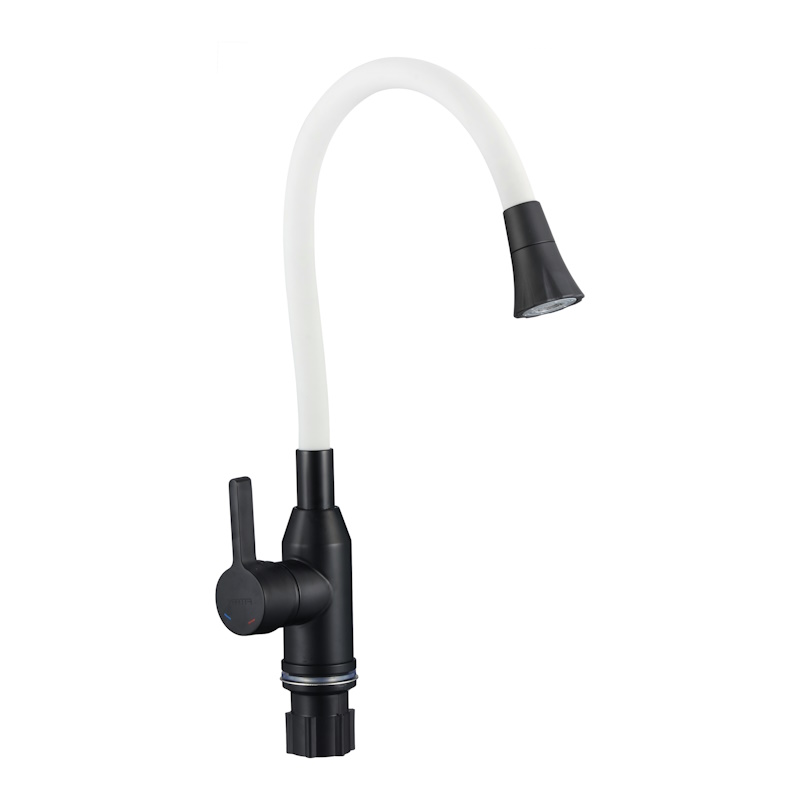 Закажите товар "Смеситель для кухни с гибким изливом и режимом душ Fmark FS8277H-02, черный/белый"